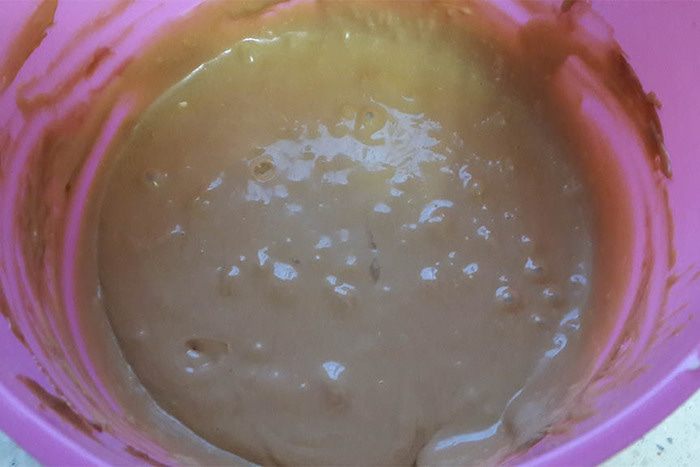 В половину теста просеять какао, размешать. Испечь шоколадный бисквит при 180°C около 50 минут.