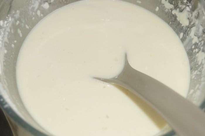 Для заливки: сметану смешать с сахаром.