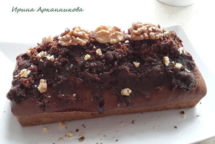 Очень шоколадный кекс с очень шоколадной постной глазурью. И много орехов)