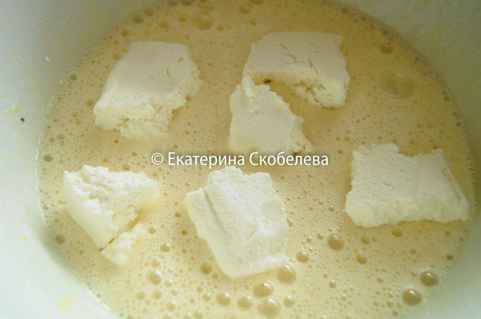 Приготовить лимонный курд. Для этого в кастрюле растопить 1/2 сахара, в воде. После чего довести до кипения. В отдельной чаше смешать целые яйца, яичные желтки и оставшуюся 1/2 часть сахара. Перемешать до однородного состояния. Добавить крахмал и аккуратно перемешать, так чтобы не было комочков. В яичную смесь добавить, тонкой струйкой и постоянно помешивая, часть кипящего сиропа, перемешать. После чего в оставшийся кипящий сироп вылить данную смесь, энергично помешивая, довести до кипения и загустения. После чего добавить лимонный сок и снова довести до кипения. Выключить нагрев. Немного охладить и добавить сливочное масло, размешать крем до полного растворения масла. Если в креме есть комочки, то лучше протереть его через сито.