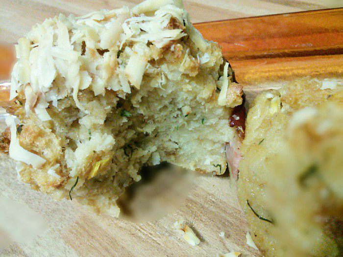 Размешать и оставить пропитаться (молока может понадобиться чуть больше). Сыр (подойдет любой сыр твердых сортов) натереть на крупной терке. Насколько ложек сыра оставить для посыпки. Остальной сыр смешать с мукой и вмешать в общую массу. Оставить на 30 мин. настояться и набухнуть тесту.