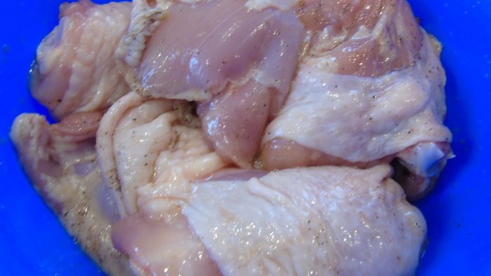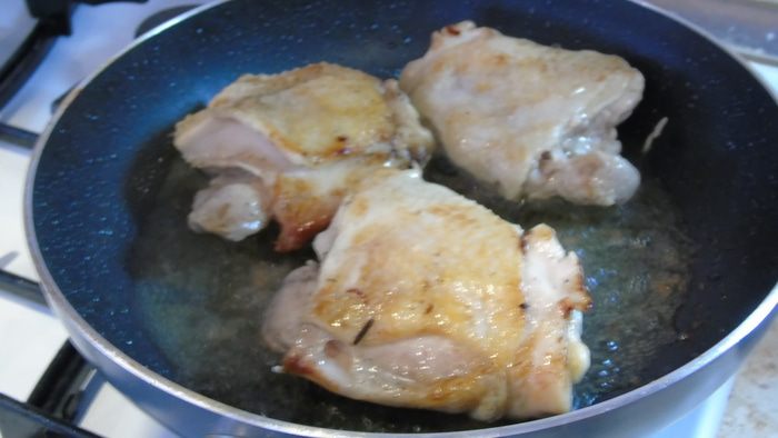 Обжариваем курицу и также откладываем в сторону.