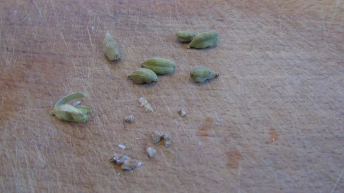 Из коробочек кардамона достаем содержимое.