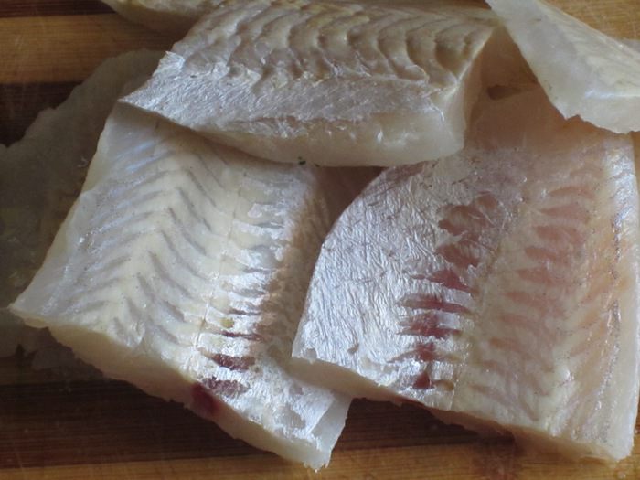 Хек нарезать небольшими кусочками.