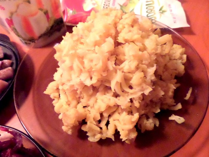 Натираем на крупной тёрке картофель...