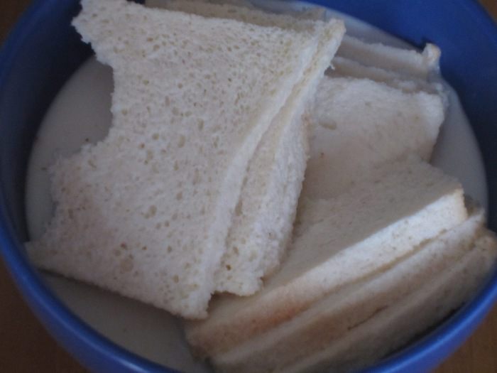 Хлеб замочить в молоке.