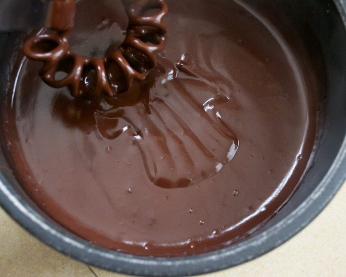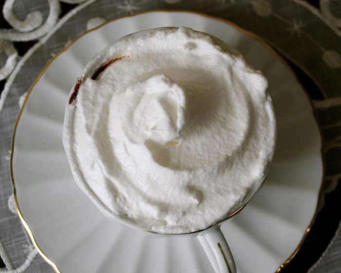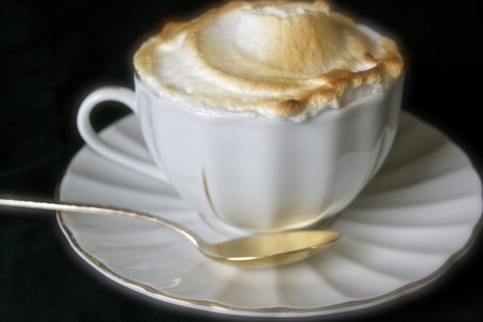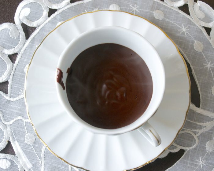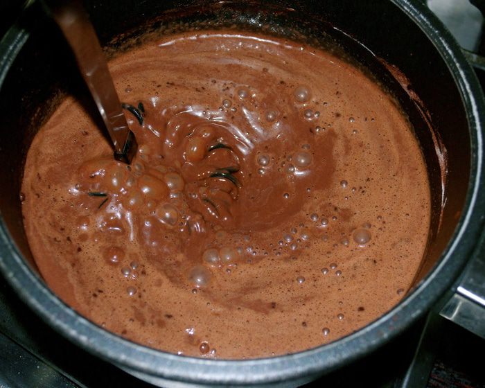При желании подпалить немного белок кухонным "факелом"-горелкой или поставить на 1 минуту в духовку под гриль... Подавать с чайной ложечкой, так как шоколад достаточно густой... Ну, а вообще, его консистенцию вы можете и сами отрегулировать, сократив количества крахмала (муки).