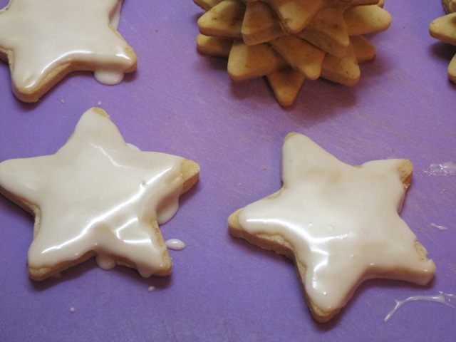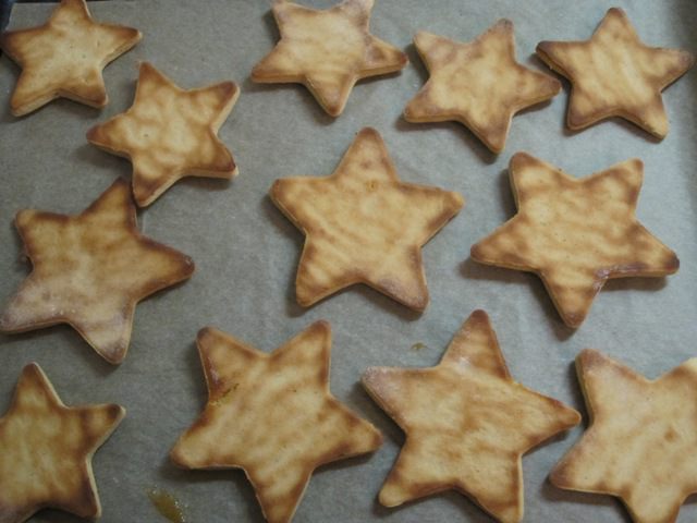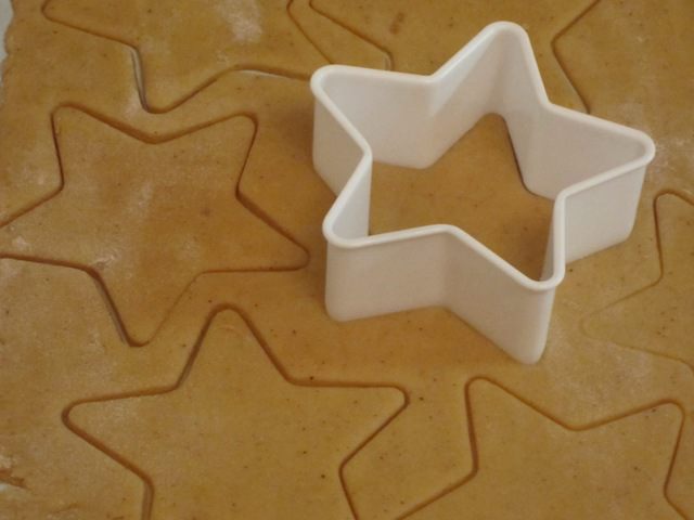 Раскатать тесто в пласт. Вырезать формочкой "звёздочки" разного размера.