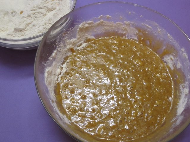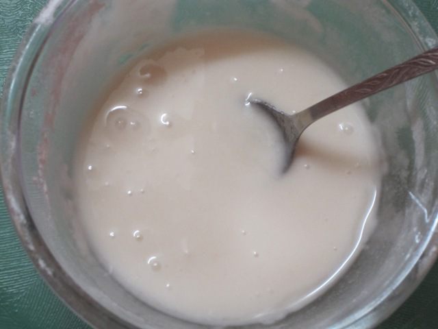 Добавить 3-4 чайные ложки воды. Хорошо перемешать.