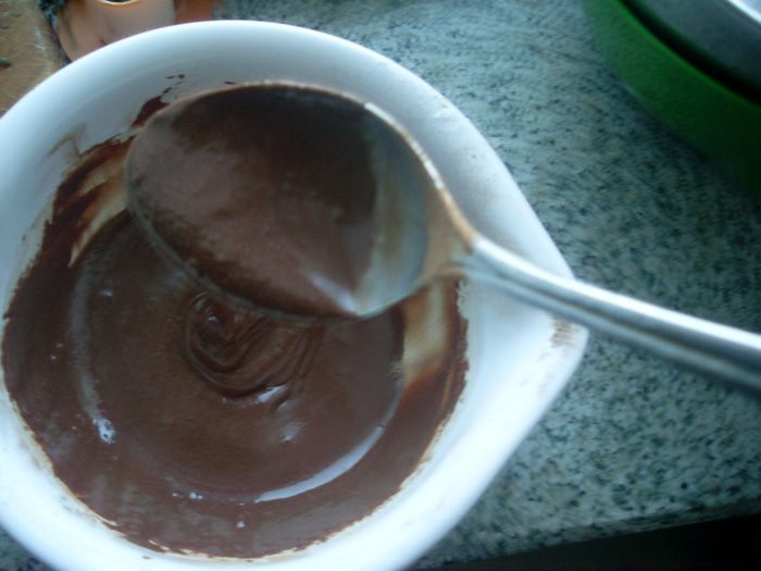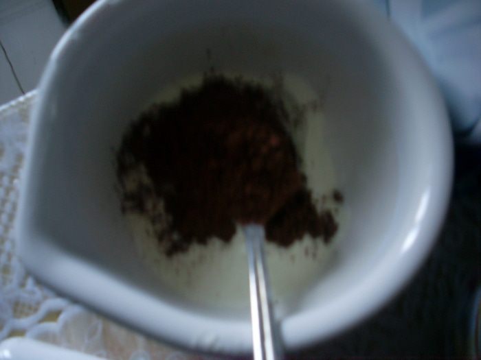 Добавить к нему сухое молоко и какао. Перемешать.