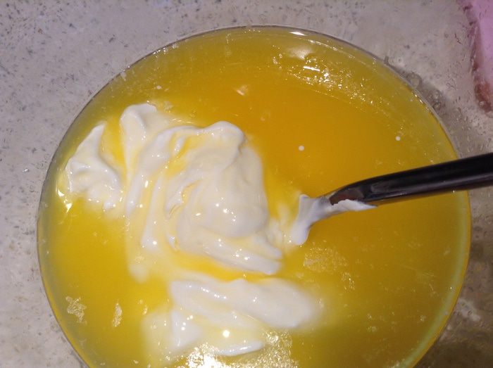 Тесто. Смешать масло (растопленное), сметану, муку, разрыхлитель, соль.