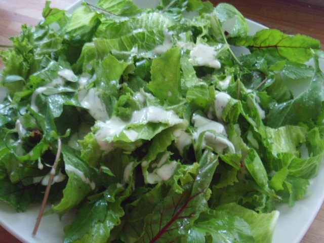 Смешать все ингредиенты для салатной заправки. На блюдо выложить салатный микс (рукола, мангольд, корн и т.д. по вашему желанию) и полить небольшим количеством заправки.