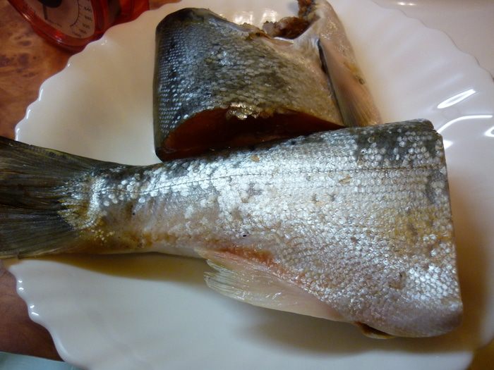 От рыбки у меня остались кусок от головы и хвост.