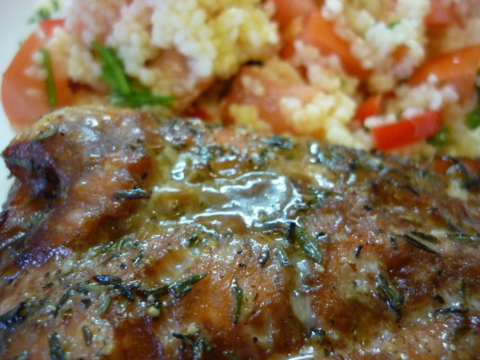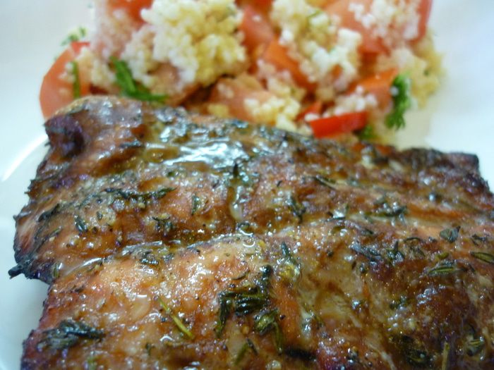 Вкусная и нежная рыба в красивой глазури. Вкусна сама по себе. А мы уплетали с салатом из кускуса.