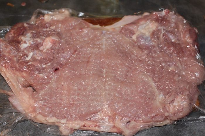 Мясо отбить, посолить, поперчить, можно добавить любимых специй и травок.