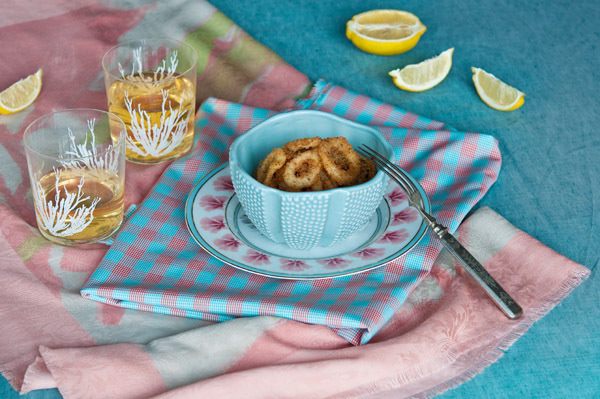 Обжарить готовые кольца кальмара в разогретом фритюре по 1 минуте.