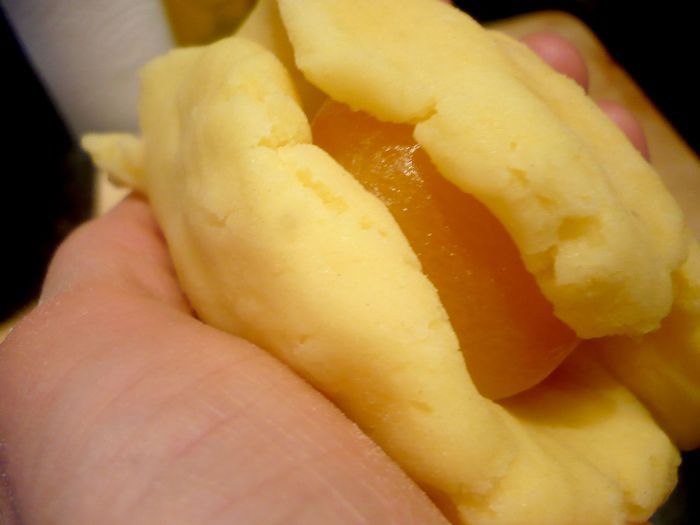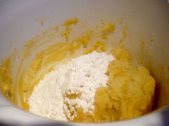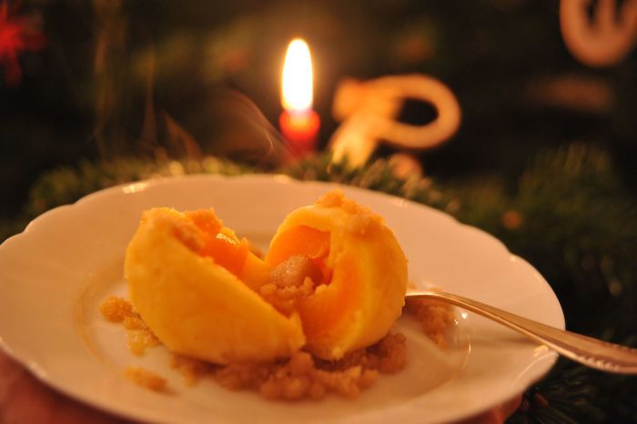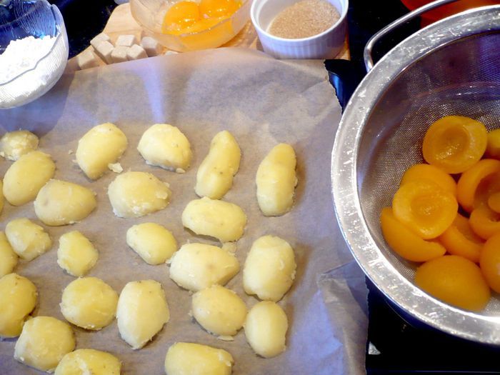 Довести достаточное количество подсоленной воды до кипения, уменьшить огонь почти до минимума, аккуратно выложить в слегка кипящую воду клёцки и дать повариться около 8 минут. Приготовить посыпку. Растопить 100 г сливочного масла, соединить его с сухарной крошкой, дать крошке слегка поджариться и ввести 40 г сахара, цедру лимона и корицу, хорошо перемешать. Клёцки извлечь из воды шумовкой, дать жидкости стечь и подавать еще теплыми с посыпкой. Приятного Вам аппетита!