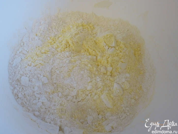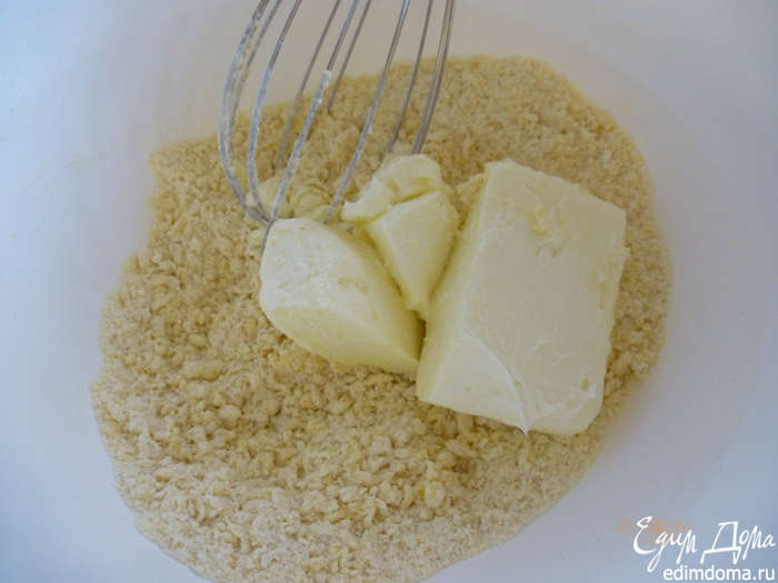 Добавляем размягченное сливочное масло и замешиваем крутое тесто.