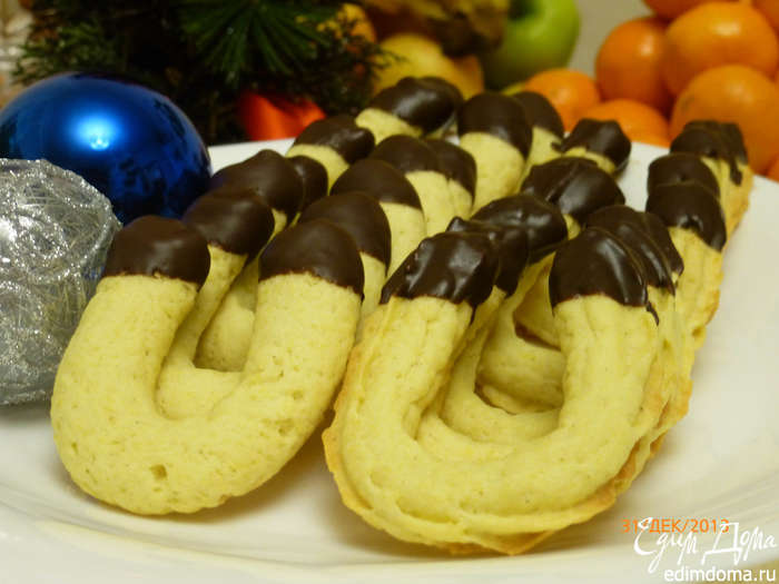 Шоколад растопим на водяной бане. Обмакиваем концы подковок в шоколад и оставляем застывать. Приятного аппетита!