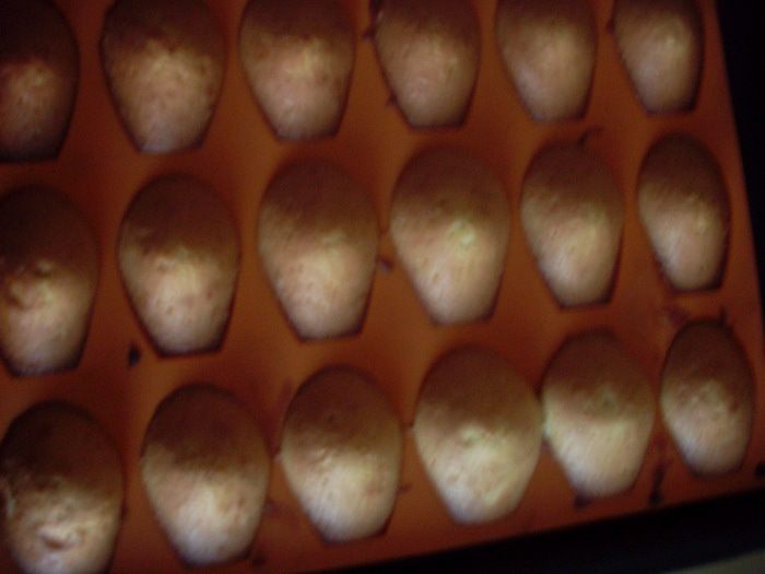Мои мадленки выпекались около 10 минут. Маленькие - как в оригинальном рецепте - 5 минут. Наиболее вкусные они остывшие - такая карамельная корочка получается и нежное, очень ароматное тесто, в котором встречаются острые кусочки перца.