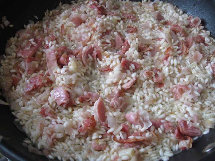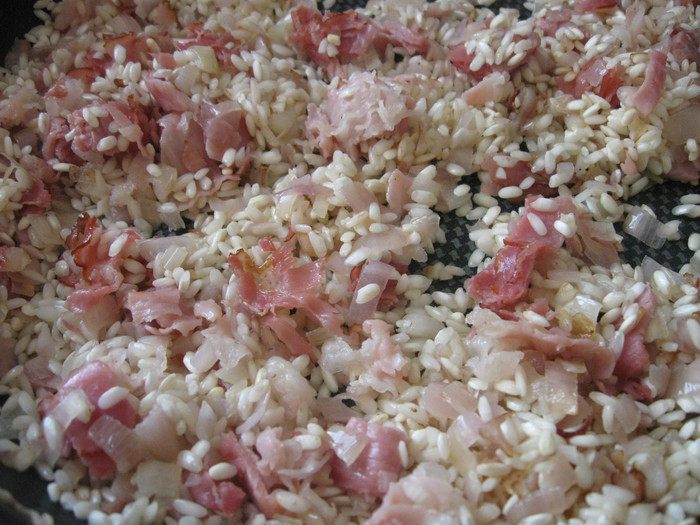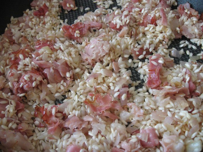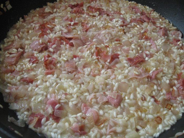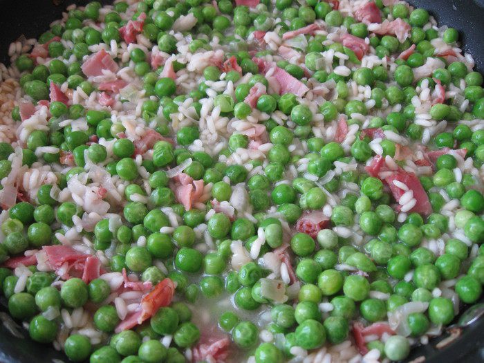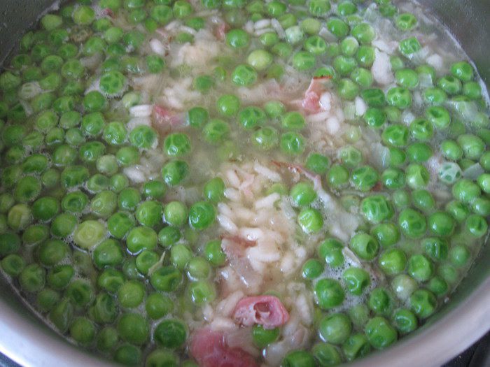 Переложить все из сковороды в кастрюлю с оставшимся (небольшое количество) бульоном, поставить на минуту-другую на огонь, выключить, закрыть крышкой. Общее время приготовления риса — 15 минут, не более. После выключения конфорки процесс варки подолжается еще некоторое время. Это надо учитывать, чтобы рис не разварился излишне. Если жидкости будет мало, можете подлить в кастрюлю 1 половник бульона (разогреть), который мы оставили в отдельной кастрюле.