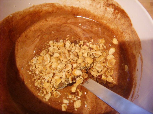 Брауни: в разогретую до 180° духовку поместить на противне фундук и запекать 12 минут, затем выложить на кухонную салфетку, охладить и счистить шелуху, крупно нарубить.