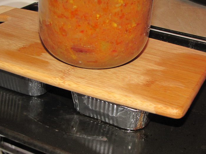 Через 40 минут достаем террины и обязательно!, пока террины горячие, поставить их под гнет до полного остывания. В качестве гнета я использовала двухлитровую банку с домашней кабачковой икрой. ))) Затем с тем же гнетом убрать в холодильник, как минимум на 3 часа или на ночь.