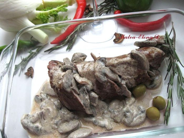 Сочная телячья вырезка по-французски с шампиньонами