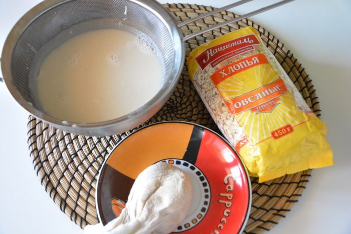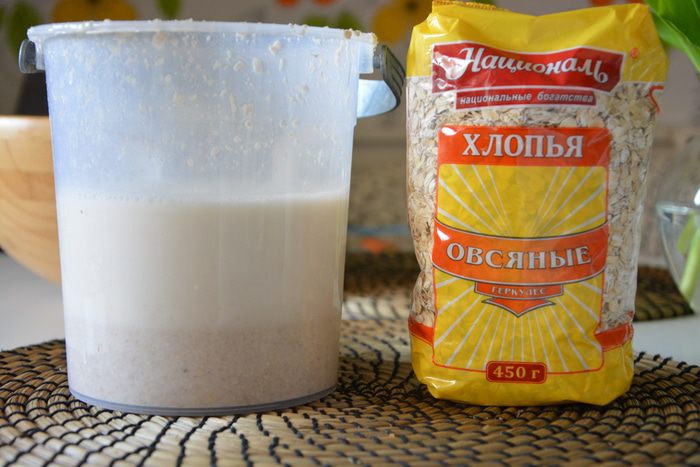 Овсяные хлопья ТМ «Националь» измельчить в комбайне или кофемолке и замочить в прохладной воде, закрыть крышкой, убрать в теплое место на ночь.