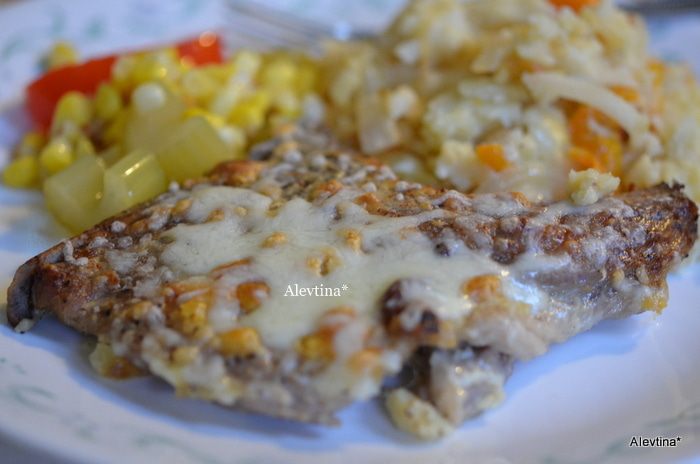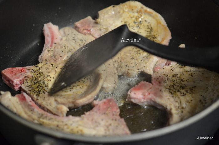 Свиные котлеты посолить и поперчить с обеих сторон. Обжарить свиные котлеты на растительном масле до полу готовности с 2х сторон. Снять со сковороды.