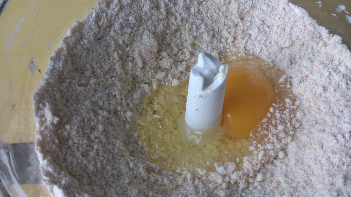 Добавить яйцо и быстро замесить тесто.