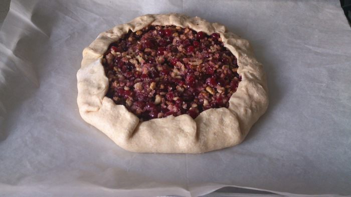 Завернуть края теста. Перенести вместе с пергаментом на лист и выпекать 40 минут при 180 С.