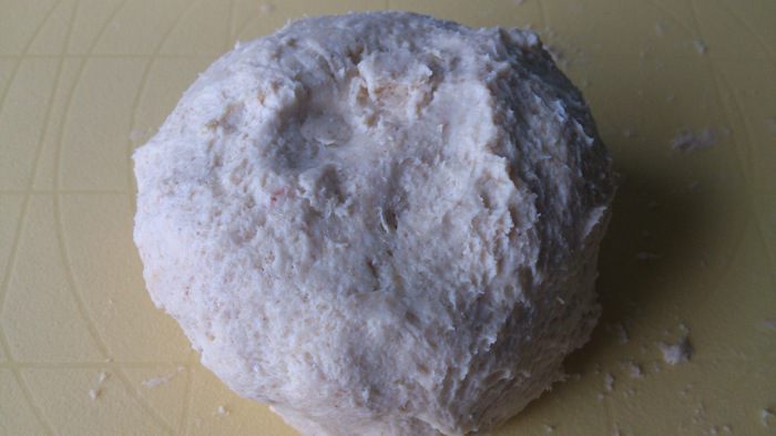 Скатать его в шар и положить на 40 минут в холодильник.