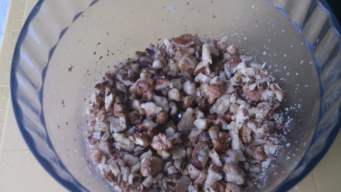 Орехи нарубить не очень мелко.