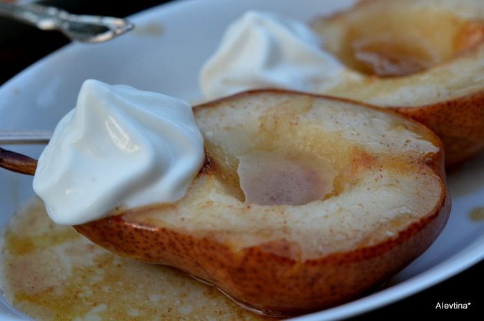 Сбрызнуть груши этой смесью. Поставить в духовку на 35-45 мин. И в течение запекания каждые 10 мин. смазывать этой смесью.