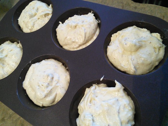 Тесто поместить в формочки для маффинов на 2/3, смазав их маслом и посыпав мукой или выложив бумажными прокладками.