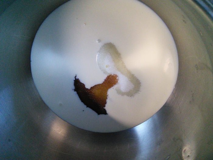 Для начала нужно приготовить миндальный слой. Для этого соединить сливки с сахаром и медом, довести до кипения (когда только появятся первые бульки).