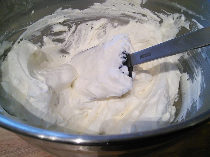 Выложить крем, красивее и удобнее выкладывать крем с помощью кулинарного щприца.