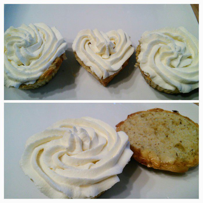 Для крема взбить сливочный сыр (маскарпоне или филадельфию, или любой другой мягкий свежий сыр) с сахарной пудрой и ванильным экстрактом. Отдельно взбить сливки и вмешать сливки в сыр лопаточкой, вымешивая сверху вниз.