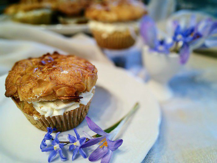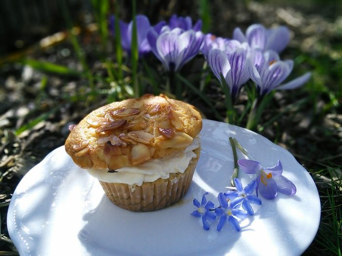 Накрыть миндальной шапочкой. При желании посыпать сахарной пудрой.