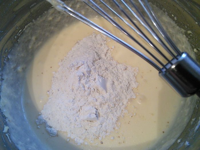 Настала очередь муки. Ввести ее нужно поэтапно, вмешивая, чтобы не было комочков.