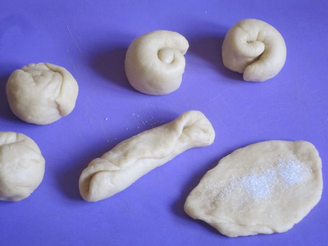 Каждый кусочек теста сначала скатать в шарик, а потом слегка раскатать, посыпать сахаром, можно положить варенье, закрыть с двух сторон.