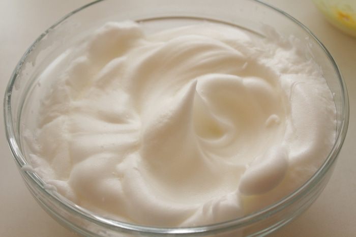 Яйца разделить на белки и желтки. Желтки взбить с маслом.