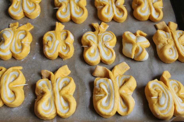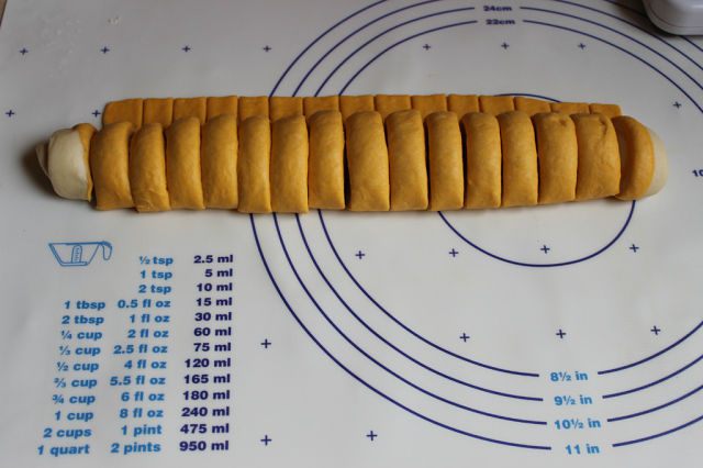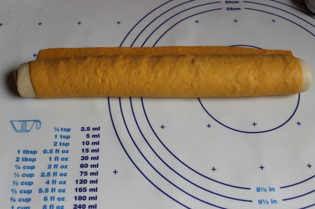 Итак, я взяла готовое детское пюре. Баночку 180 г (можно, конечно, самим сделать пюре). Прогрела его в микроволновке. Добавила туда 1,5 ч. л. дрожжей, 50 г растопленного масла, 40 г сахара, соль 0,5 ч. л., половинку яйца и муки 300 г. Замесила тесто. (Сразу скажу что булочки не сильно сладкие получаются, кто любит послаще, добавьте сахар.) Замесила тесто.
