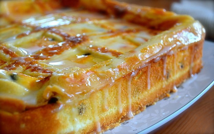 Достать сырник из духовки и дать полностью остыть. В идеале — поставить на ночь в холодильник. Как любой сырный торт-пирог (чизкейк), этот сырник подавать лучше всего охлажденным. Для глазури взбить венчиком сахарную пудру с лимонным соком. При помощи кисточки нанести на поверхность десерта и дать ей застыть.
