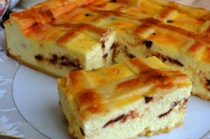 При всей моей любви к чизкейкам, всевозможным ватрушкам, запеканкам... Такой сырник я делала впервые. Рецепт нашла у одной польской девушки-блоггера. Но ссылка была на рецепт от известного кондитера Пьера Эрме... Нам этот польский сырник ОЧЕНЬ понравился!!! Конечно, чизкейком его язык не поворачивается назвать. Но, уверена, что все любители творожнойвыпечки его оценят по достоинству!!! Десерт получается очень воздушным и легким, а нежное песочное тесто дополянет его как нельзя лучше! Единственным моим отсутплением от рецепта-оригинала стала замена присутствующего в творожной начинке изюма на шоколадные капли... Просто мы не любим изюм в выпечке. Если же Вы захотите сделать этот сырник в его подлинном варианте, замените шоколад на 100-150 г изюма (по вкусу).