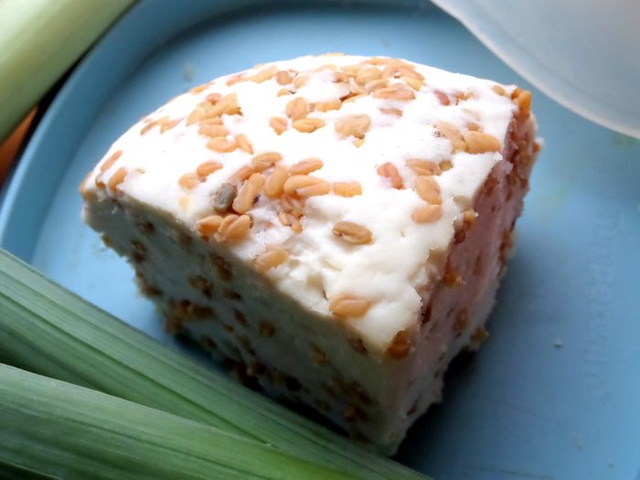 Подаём с сыром бри или вот с таким творожным сыром с семечками... Я покупаю с разными для пробы и ем с кофе (мои мужчины почему-то не любят с семечками).
