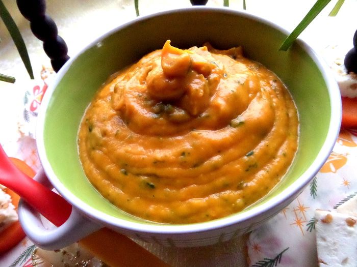 Вот такой оранжевый супчик в зелёную крапинку получается)))