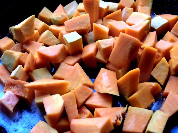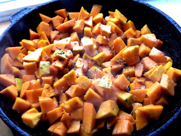 Тыкву очистить.нарезать на кубики и обжарить в масле.