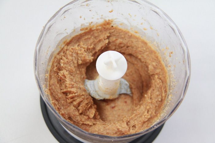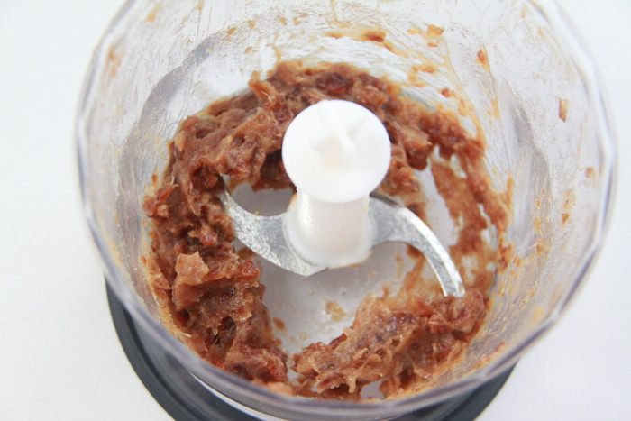 К финикам добавить миндальную смесь, имбирь и вымесить всё в блендере до однородной массы.